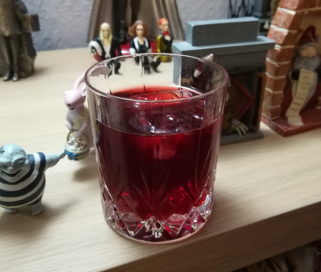 Ok, really simple: pour two measures of Amaretto into a glass. Even though I’m not (sadly) endorsed by the company, I’d recommend Disaronno as the liqueur of choice. Drop in a few ice cubes to keep it all chill. Then top up with cranberry juice (your choice from your local supermarket), add an optional Marashino cherry, and you’re done.